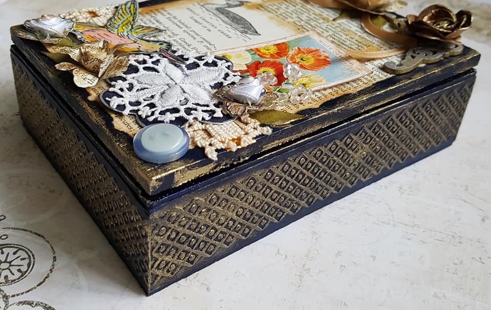 Wreath made for Simply Vintage Designs DTVintage Mixed Media Journal Cover Made for Simply Vintage DesignsInside Cover of Vintage Journal, A Padded Pin BoardBack Inside Cover of Vintage Journal Mixed Media Trinket Box for Simply Vintage Designs Inside of Vintage Trinket BoxVintage Trinket Box Made For Simply Vintage Designs Seaside MDF Covered Box in Texture Paste, MDF Covered Embellishments and ShellsPlaque for Simply Vintage Designs MDF Tray Painted and Decoupaged with Images from Heartfelt Creations Stamps Mixed Media Canvas with Paper Clay Embellishments Made From MouldsMDF Xmas Bauble made for Mama Makes DTGraphic 45 Papers